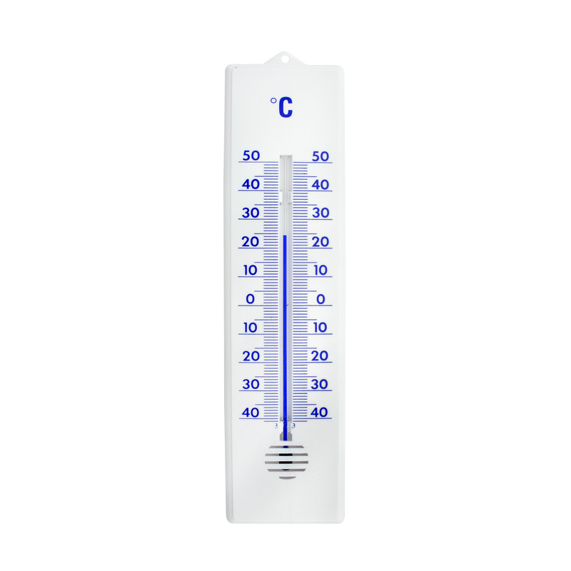 Das Außenthermometer aus Kunststoff ist für den Einsatz im wettergeschützen Außenbereich geeignet. Das quecksilberfreie Thermometer zeigt die Temperatur von -40 °C bis 50 °C an. Das Außenthermometer kann mit einer Öse an der Wand befestigt werden.