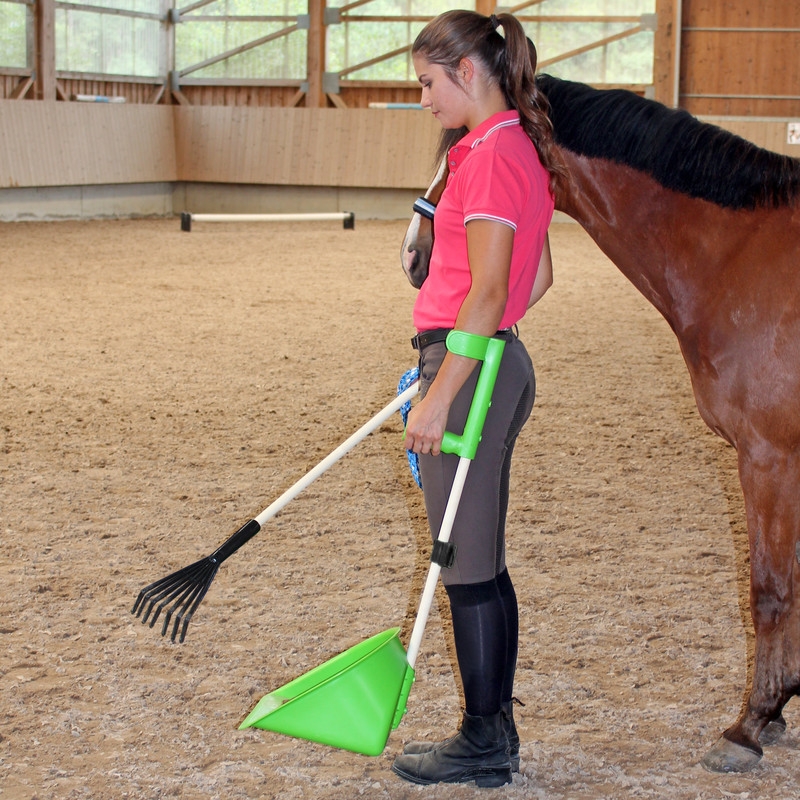 Der Easy-Bollensammler macht das Ausmisten und Absammeln dank seines durchdachten Designs besonders angenehm. Das neu entwickelte Handstück schont das Handgelenk und erleichtert das Tragen des vollen Bollensammlers. Der Rechen aus Kunststoff ist angenehm leicht und kann mit einem Clip einfach an der Schaufel befestigt werden. Der ideale Begleiter im Stall und auf Turnieren.