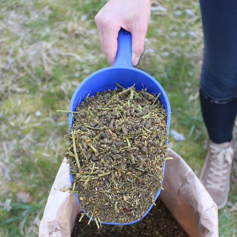 Die Futterschaufel PRO mit Fassungsvermögen 1 kg bietet eine lange Nutzungsdauer und eine einfache Handhabung durch den ergonomisch geformten Griff.