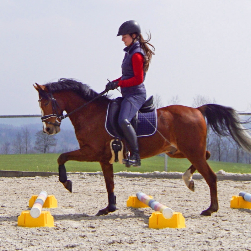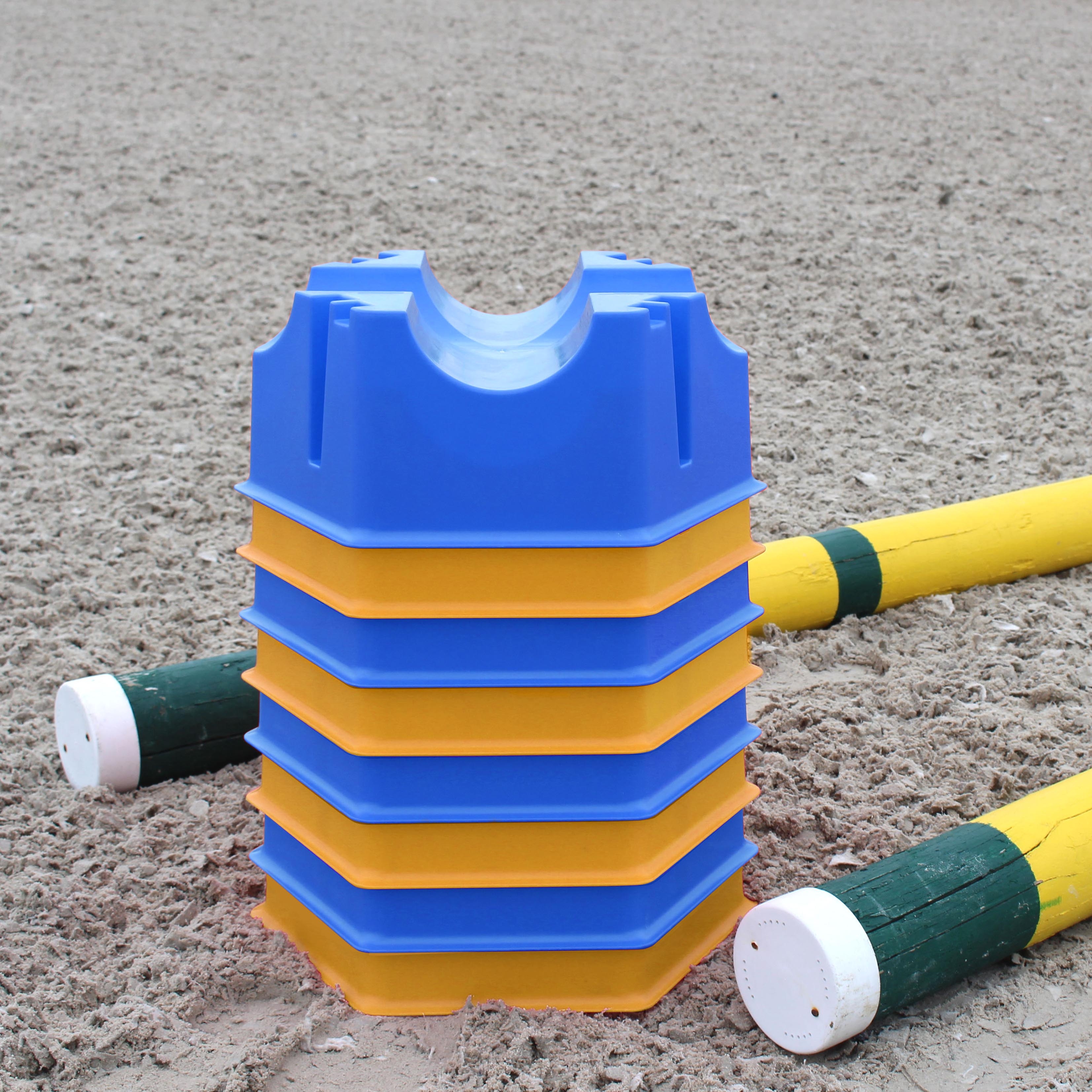 Der GEWA Stangenblock ist ein funktionelles Zubehör im Parcours, beim Longieren - sowie bei der Bodenarbeit. Für alle Standardstangen. Er kann einzeln verwendet werden oder gestapelt. Mit einer einfachen 180°-Grad-Drehung des zweiten Blockes werden aus 15 cm 25 cm Höhe. Platzsparend stapelbar.