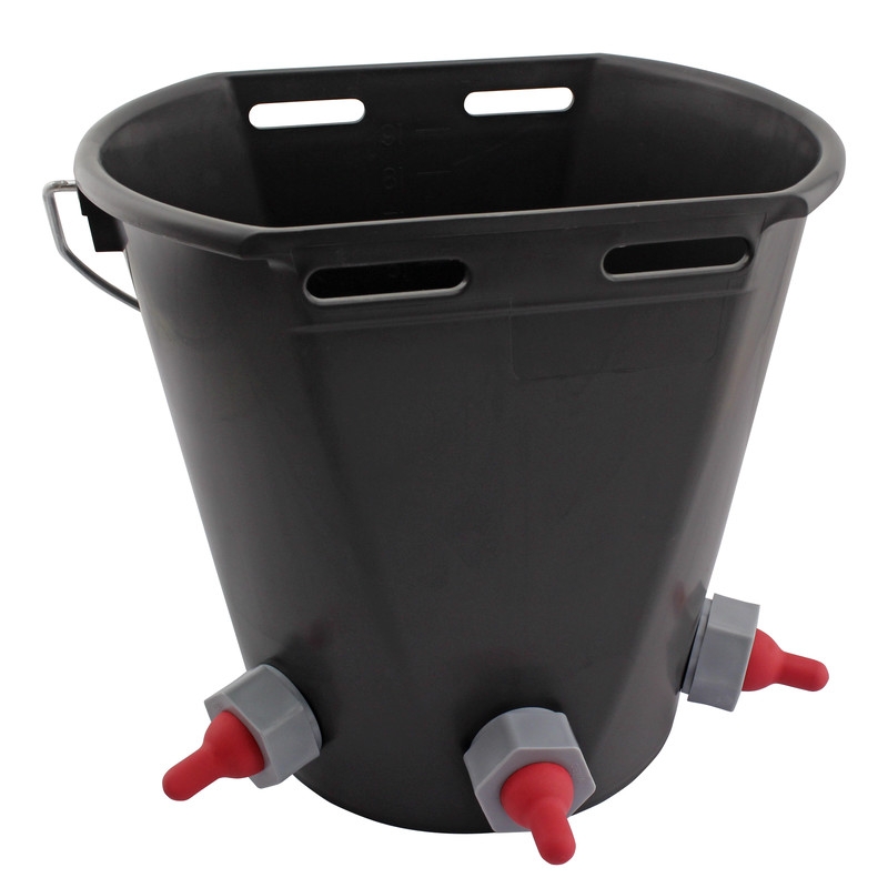 Lämmereimer, 9 Liter, mit 3 Saugstellen komplett mit Sauger, Ventil, Kunststoffhalterung
