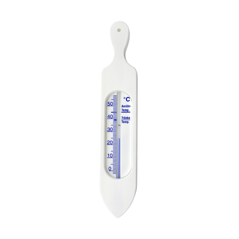Die quecksilberfreien Milchthermometer sind zur Bestimmung der exakten Kälbermilchtemperatur. Das handliche Thermometer zeigt die Temperatur zuverlässig von -2 °C bis 60 °C (# 6005). An der Skala ist die optimale Tränketemperatur hervorgehoben.