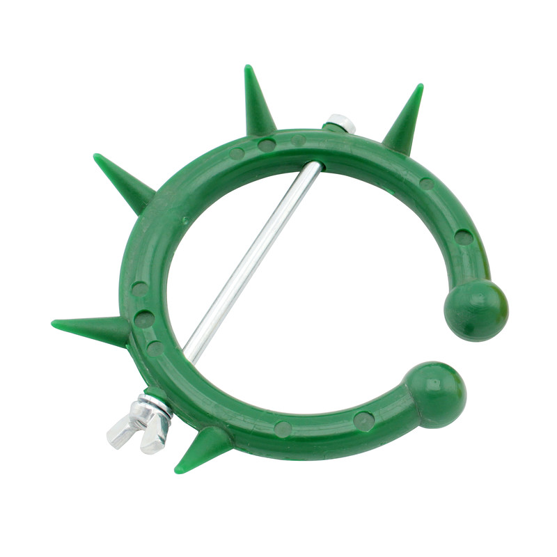 Dank einer integrierten Feststellschraube kann der Nasensaugschutz einfach angebracht werden und bietet optimalen Halt. Die fünf Kunststoffzacken verhindern zuverlässig, dass Jungvieh an die Euter der Milchkühe gehen.