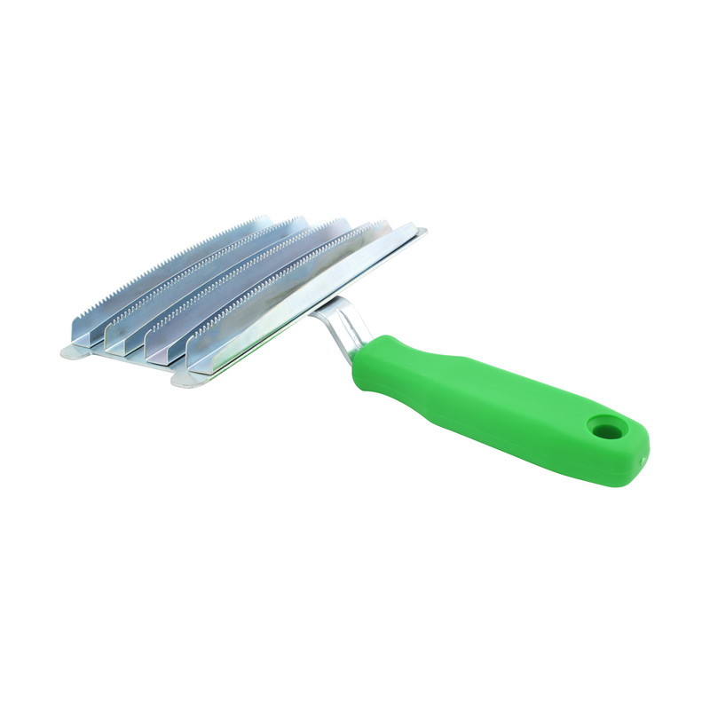 Die verzinkte Metallausführung mit Kunststoffgriff verspricht eine lange Nutzungsdauer. Die sieben feinzahnigen Reihen sind abgerundet.