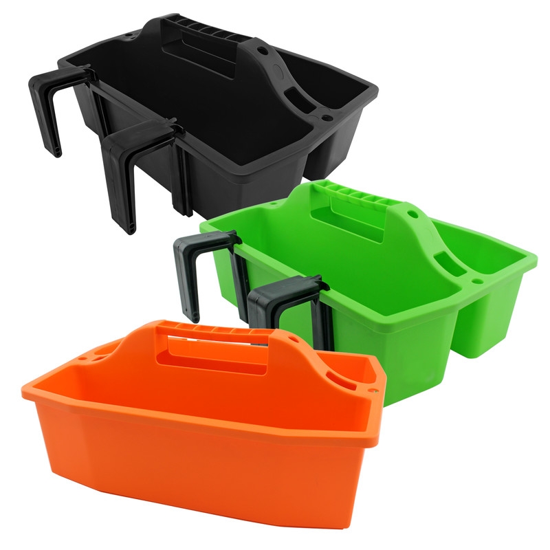 Die offene Putzbox aus hochwertigem Kunststoff bietet reichlich Platz für alle Utensilien, die zur täglichen Pferdepflege benötigt werden.