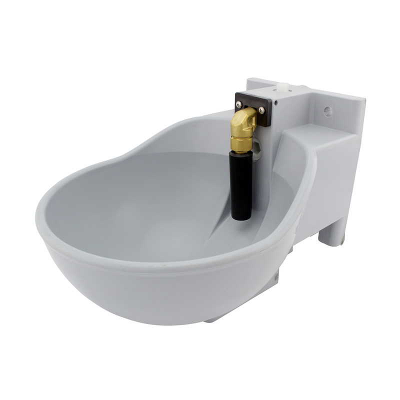 Das extrem stabile Tränkebecken ist durch ein Pendelventil sehr einfach zu bedienen. Wasser fließt ein, sobald das Tier das Pendelventil berührt. Der von oben und unten montierbare 1/2“ Wasseranschluss hat einen Durchlauf von ca. 15 Liter / Minute. Eine Wand- oder Rohrbefestigung ist möglich