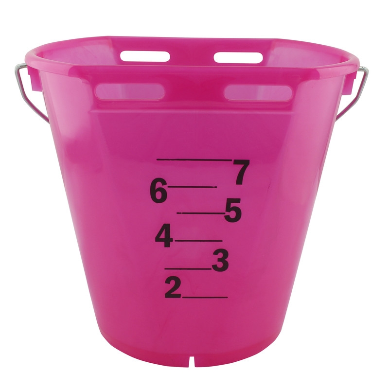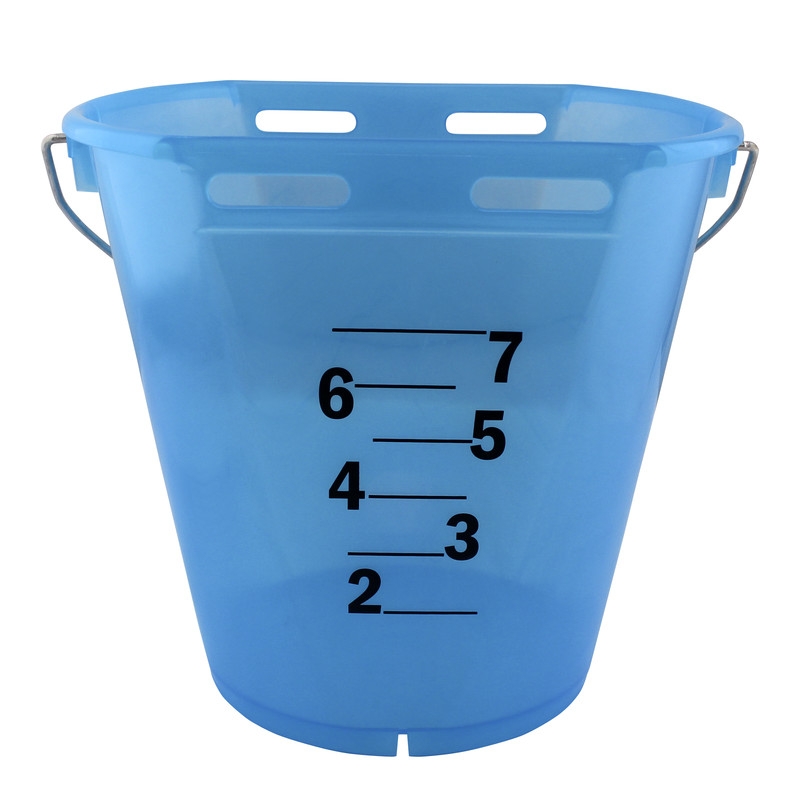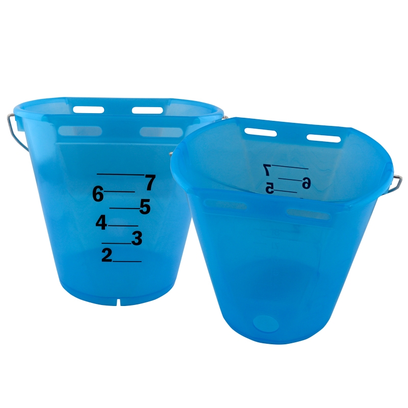 Der für den täglichen Einsatz entwickelte Tränkeeimer besteht aus stabilem und lebensmittelechtem Kunststoff. Der Eimer ist durch die verstärkten Aufhängeschlitze von vorne und hinten einhängbar. Der abgeschrägte Boden minimiert die im Eimer verbleibende Restmilch. Die eingeprägte Skala hilft bei der genauen Dosierung der Füllmenge. Zur einfacheren Reinigung wurde auf der Unterseite eine Aussparung eingefügt, damit Spülwasser optimal abfließen kann. Durch die aufgedruckte Skala auf der Eimerrückseite kann man schon von weitem die aktuelle Füllmenge erkennen.