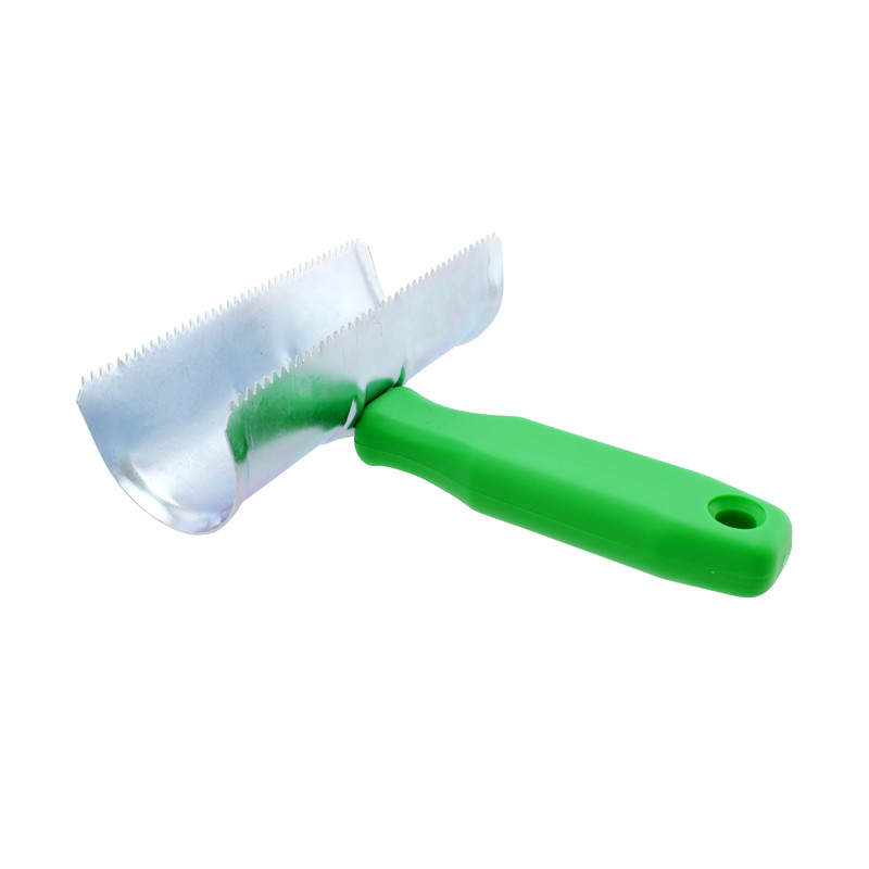 Die verzinkte Metallausführung mit Kunststoffgriff verspricht eine lange Nutzungsdauer. Die zwei bzw. sieben grobzahnigen Reihen sind optimal zur Fellreinigung.