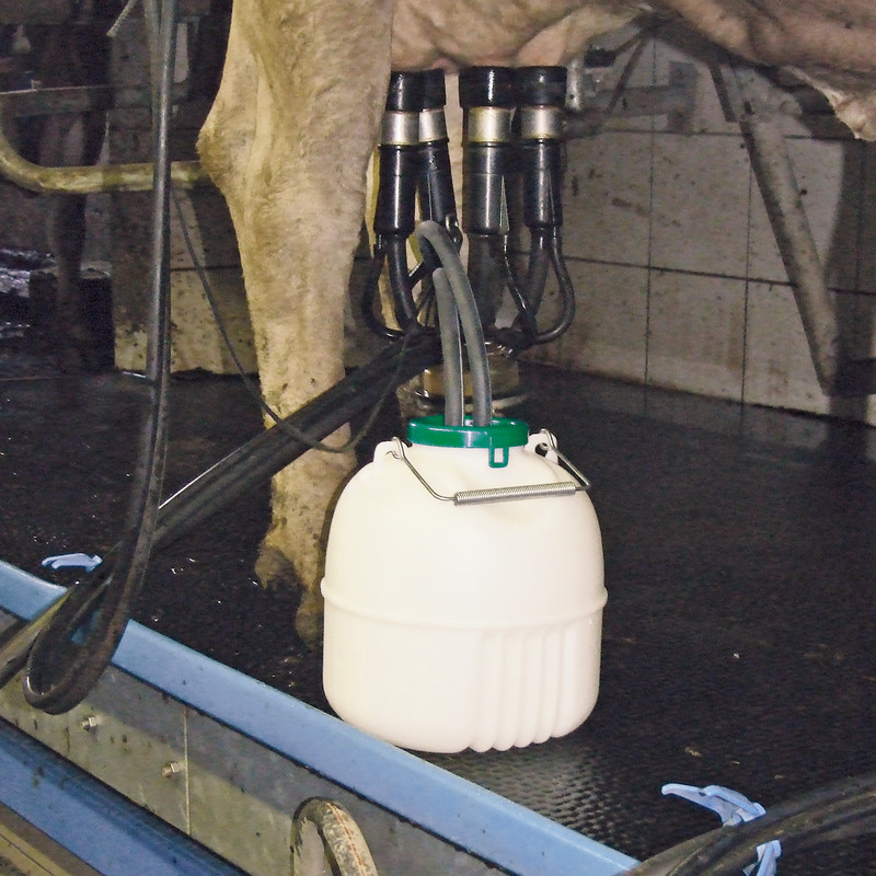 Mit dem GEWA Viertelmelker kann die Milch einer Zitze des Euters getrennt abgemelkt werden, sollte diese durch Fremdstoffe verunreinigt sein oder einen erhöhtem Zellgehalt aufweisen. Der sehr starke 12 Liter Kunststoffkessel besitzt eine große Öffnung zur leichten Reinigung und hat eine Druckbegrenzung von min. 0,4 bar bis max. 0,6 bar.